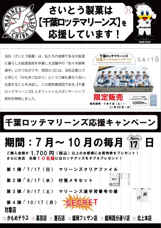 三陸菓匠さいとう直営店では7月~10月の毎月17日【千葉ロッテマリーンズ応援キャンペーン】を実施しています。